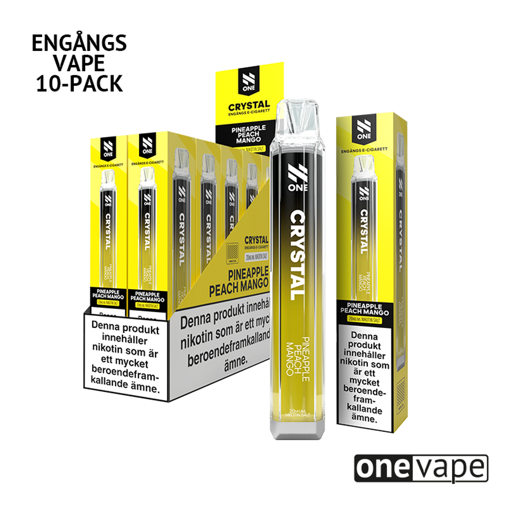 Storpack (10st) N One Crystal Engångsvape 20mg med smak av ananas, persika och mango.