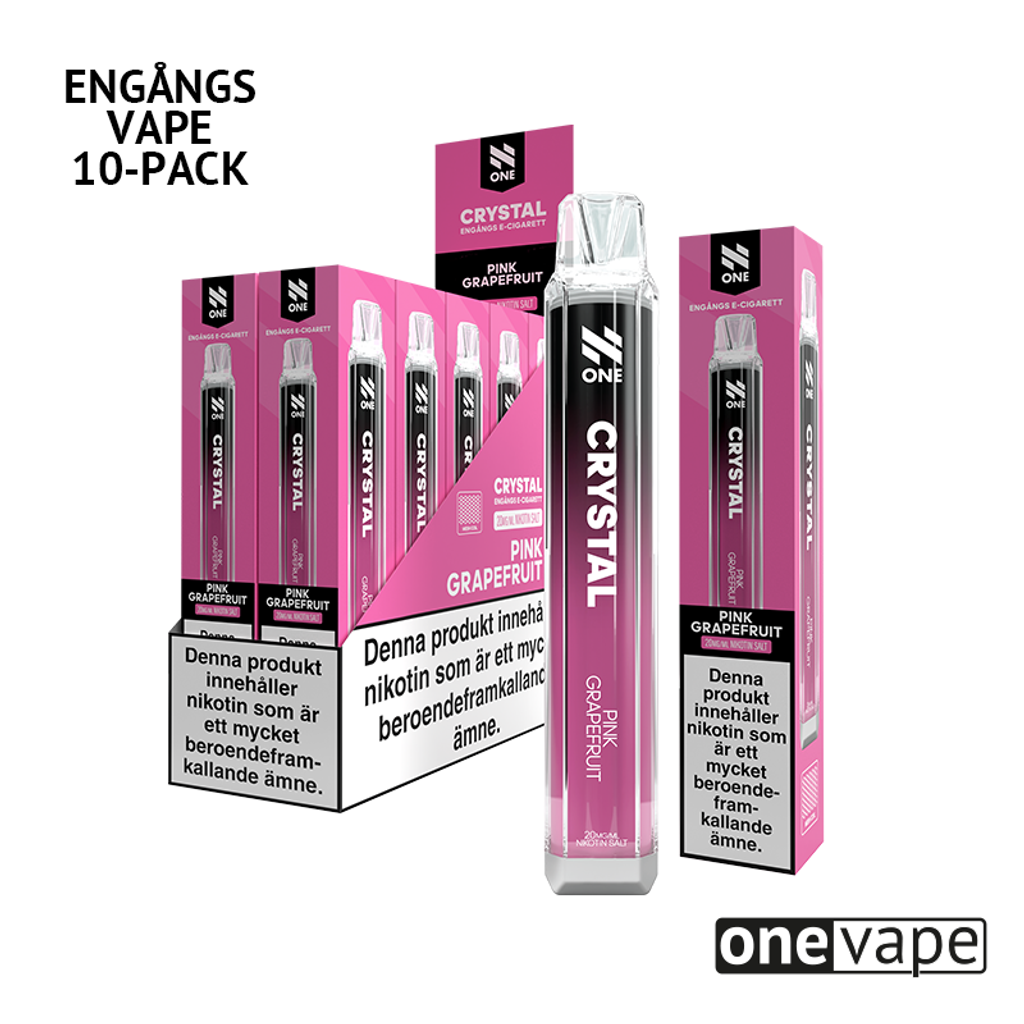 Storpack (10st) N One Crystal Engångsvape 20mg med smak av rosa grapefrukt.