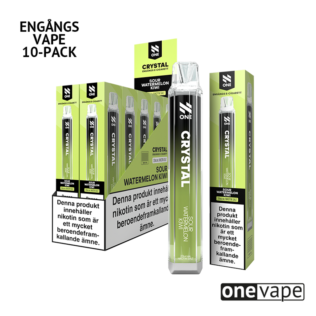 Storpack (10st) N One Crystal Engångsvape 20mg med smak av vattenmelon och kiwi.