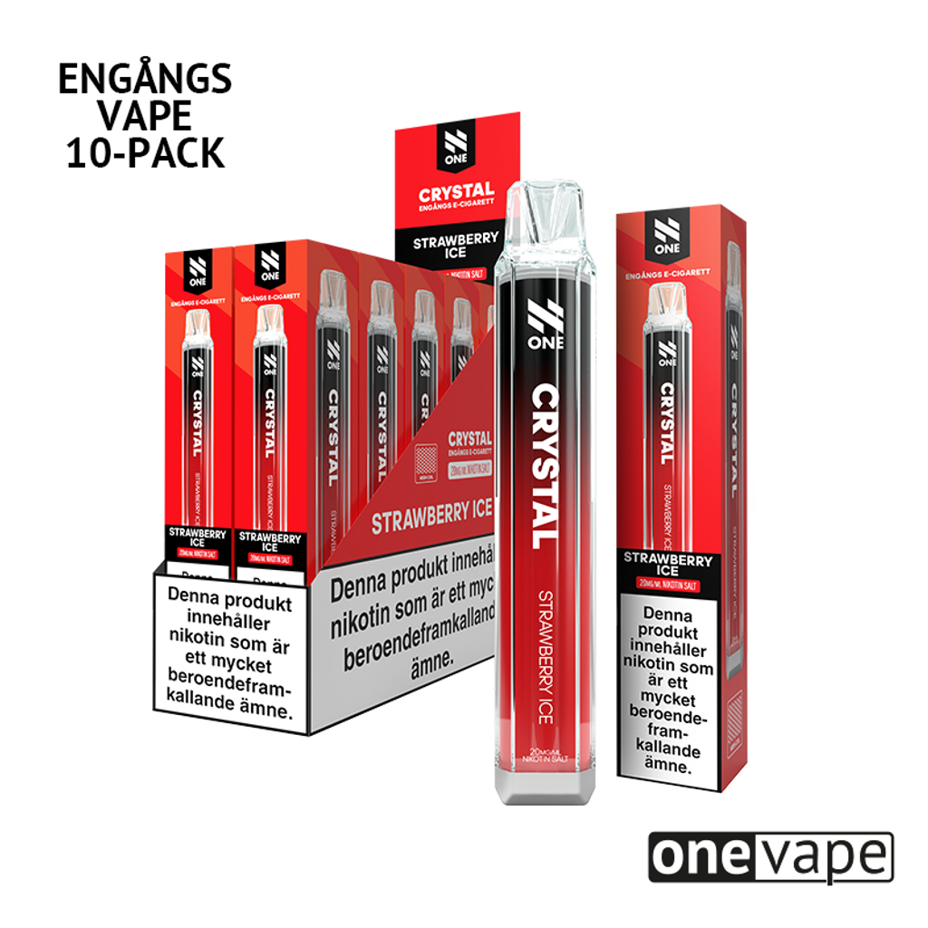 Storpack (10st) N One Crystal Engångsvape 20mg med smak av jordgubb och cooling.