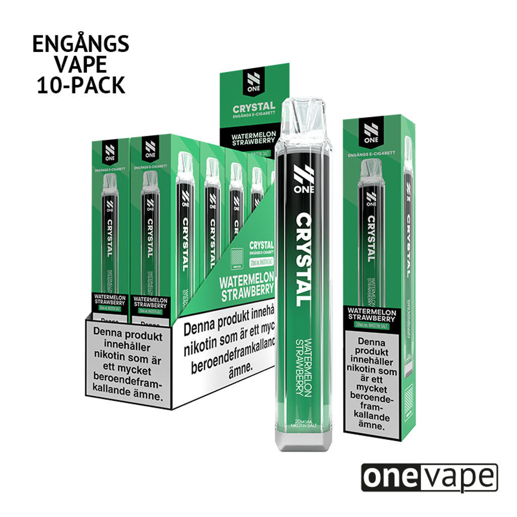 Storpack (10st) N One Crystal Engångsvape 20mg med smak av vattenmelon och jordgubb.