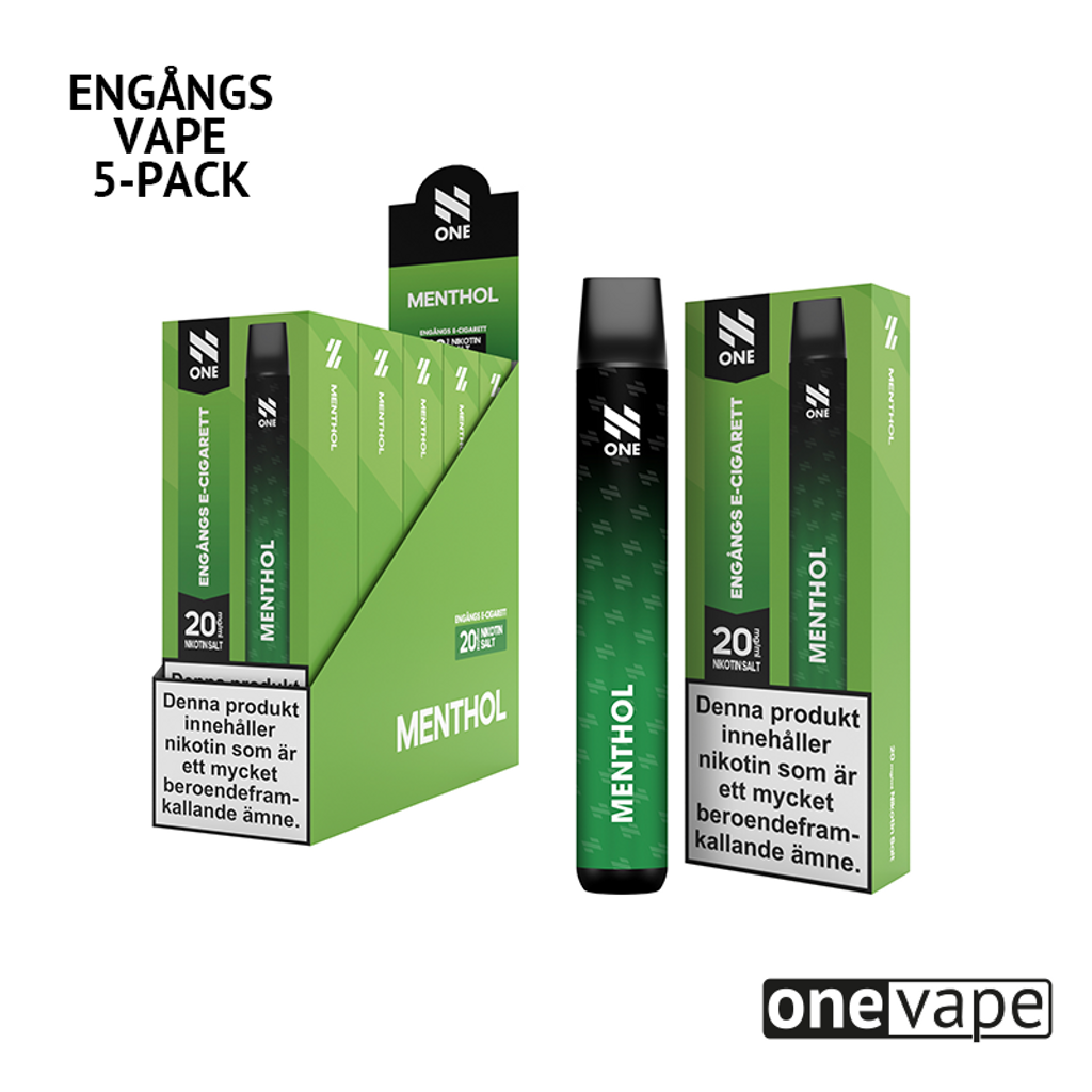 Storpack (5st) N One Engångsvape 20mg med smak av mentol.