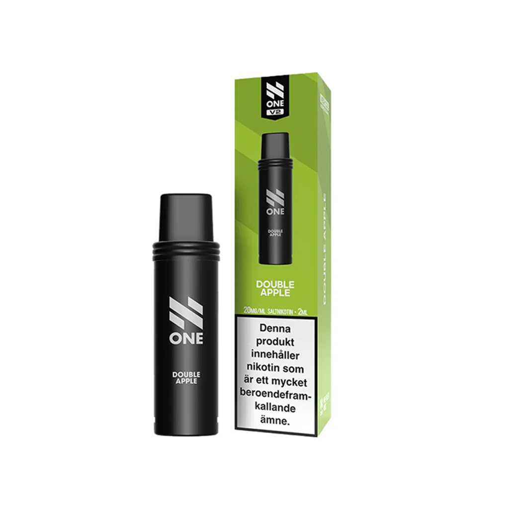 N One Mesh Pod V2 – Double Apple är en förfylld pod med smak av äpple och shisha. Avsedd att användas tillsammans med ett kompatibelt Pod Kit V2-batteri (säljs separat). Podden klickas på plats och aktiveras vid inhalering. Produkten saknar knappar och inställningar.