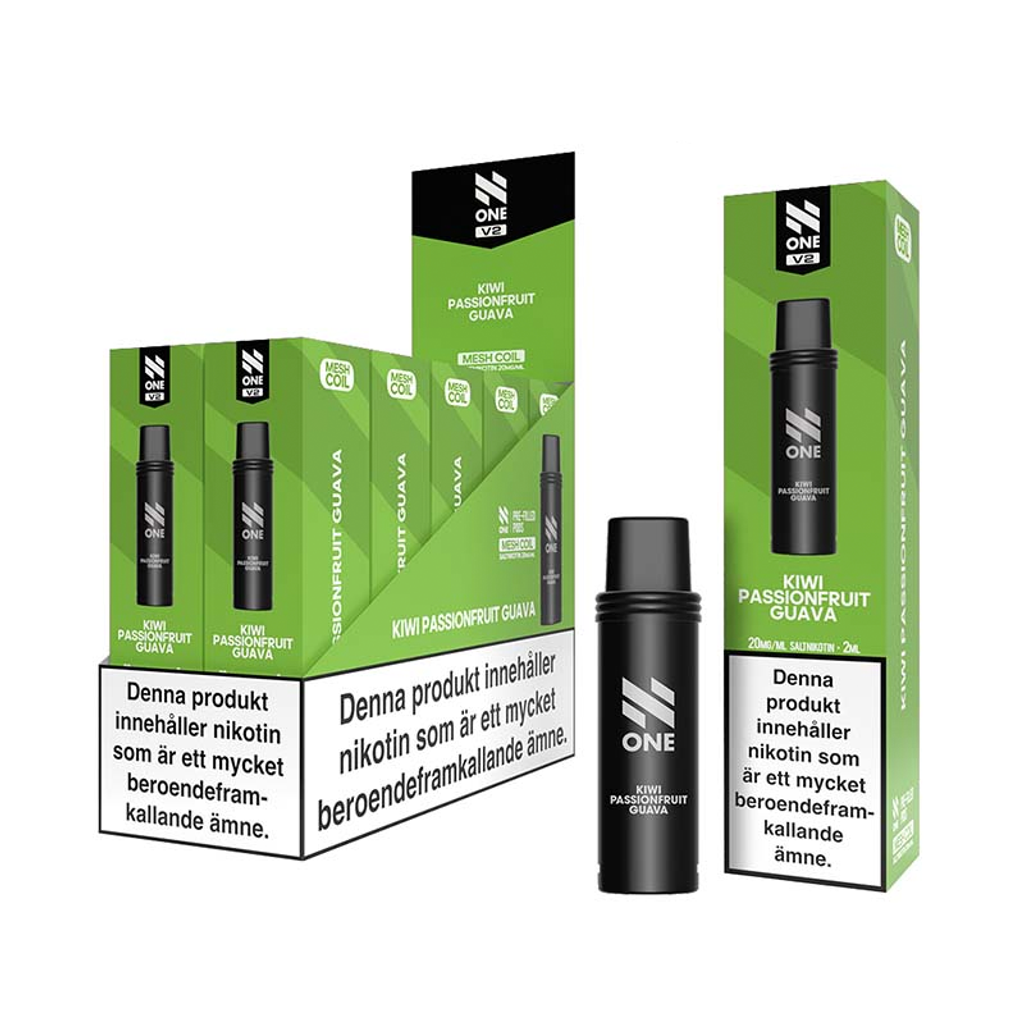 Storpack (10st) N One Mesh V2 Pod 20mg med smak av kiwi, passionsfrukt och guava
