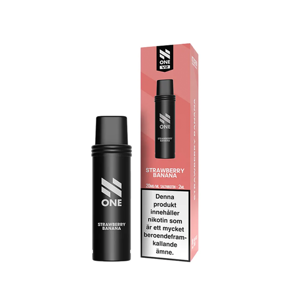 N One Mesh Pod V2 – Strawberry Banana är en förfylld pod med smak av jordgubb och banan. Avsedd att användas tillsammans med ett kompatibelt Pod Kit V2-batteri (säljs separat). Podden klickas på plats och aktiveras vid inhalering. Produkten saknar knappar och inställningar.