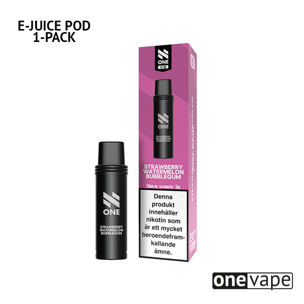 Smak av jordgubb, vattenmelon och tuggummi. 2ml Pod, 20mg nikotin.