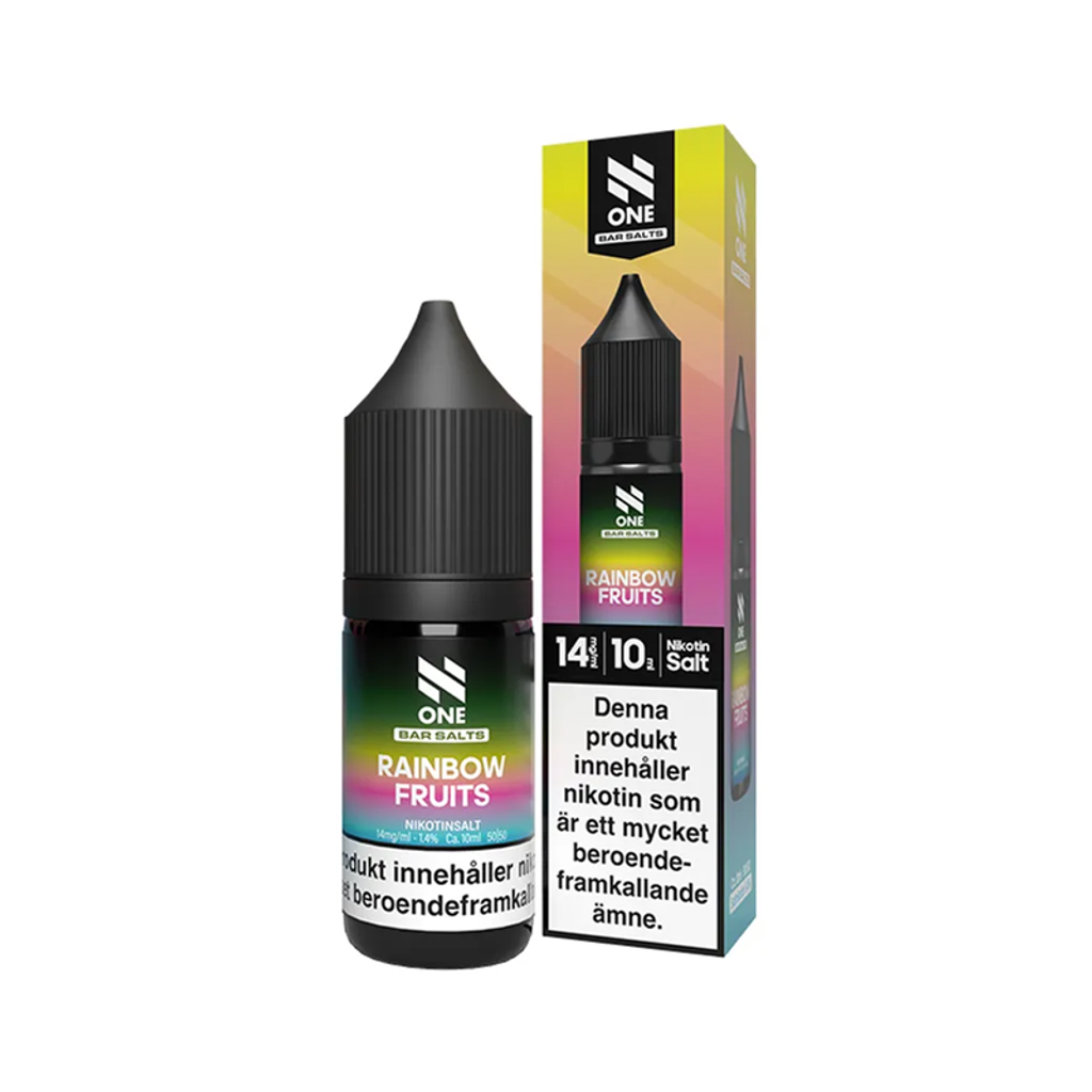 N One Bar Salts E-Juice – Rainbow Fruits är en e-juice med smak av blandade frukter, framtagen för att återskapa smaken från N One engångsvapes i ett refillformat.