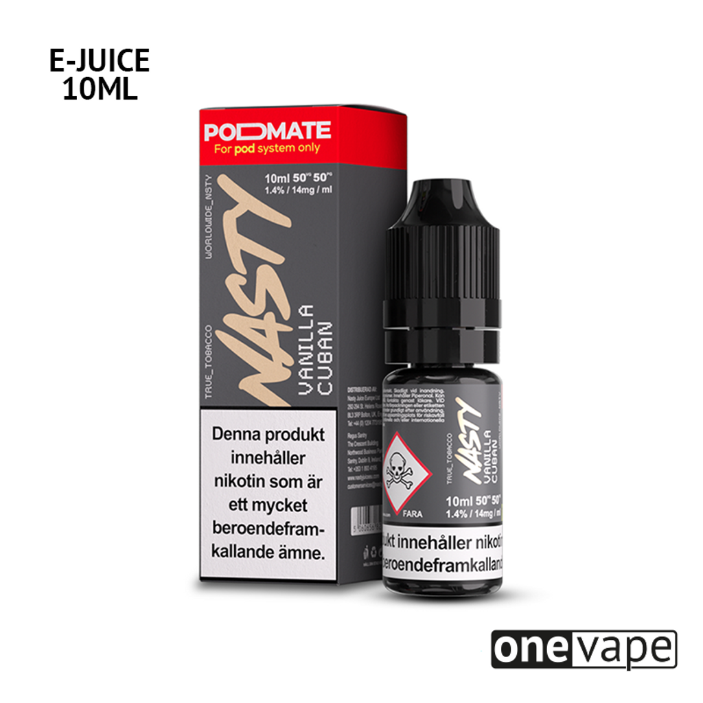 10ml E-juice med 14mg Nicsalt från Nasty Juice med smak av vanilj och tobak.