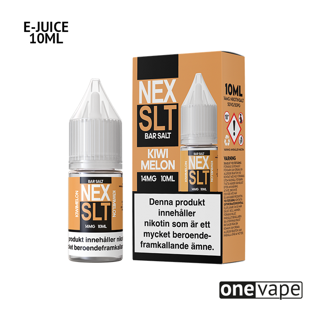 10ml E-juice med 14mg Nicsalt från NEX SLT med smak av kiwi och vattenmelon.