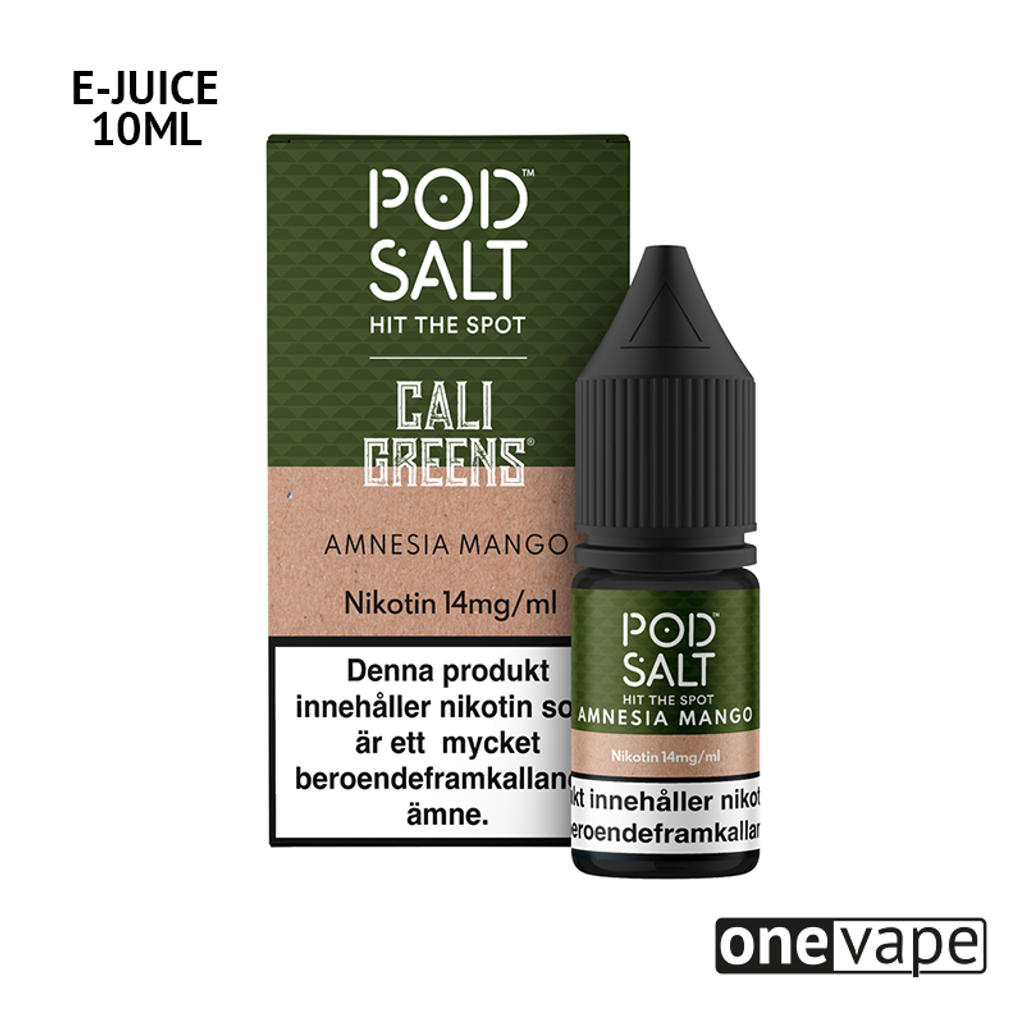 10ml E-juice med 14mg Nicsalt från Pod Salt, med smak av mango.