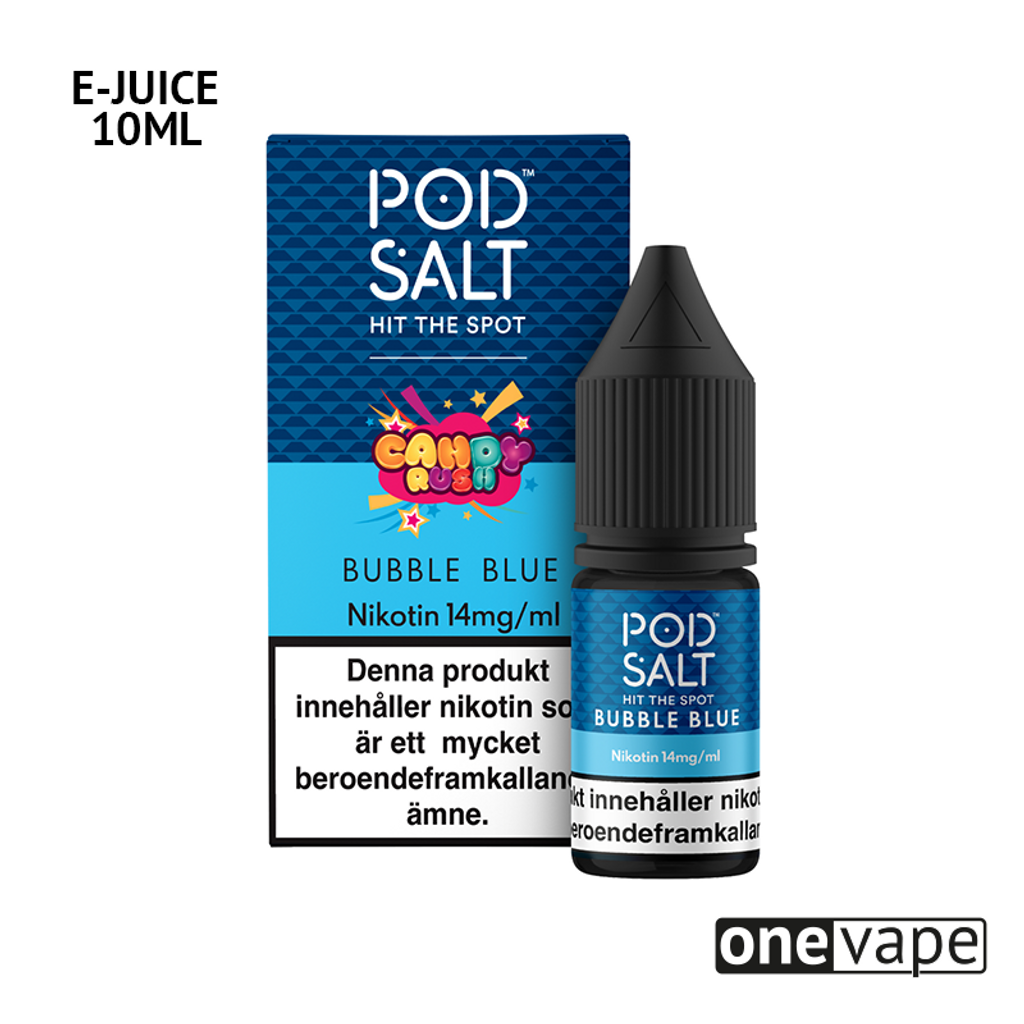 10ml E-juice med 14mg Nicsalt från Pod Salt med smak av blått tuggummi.