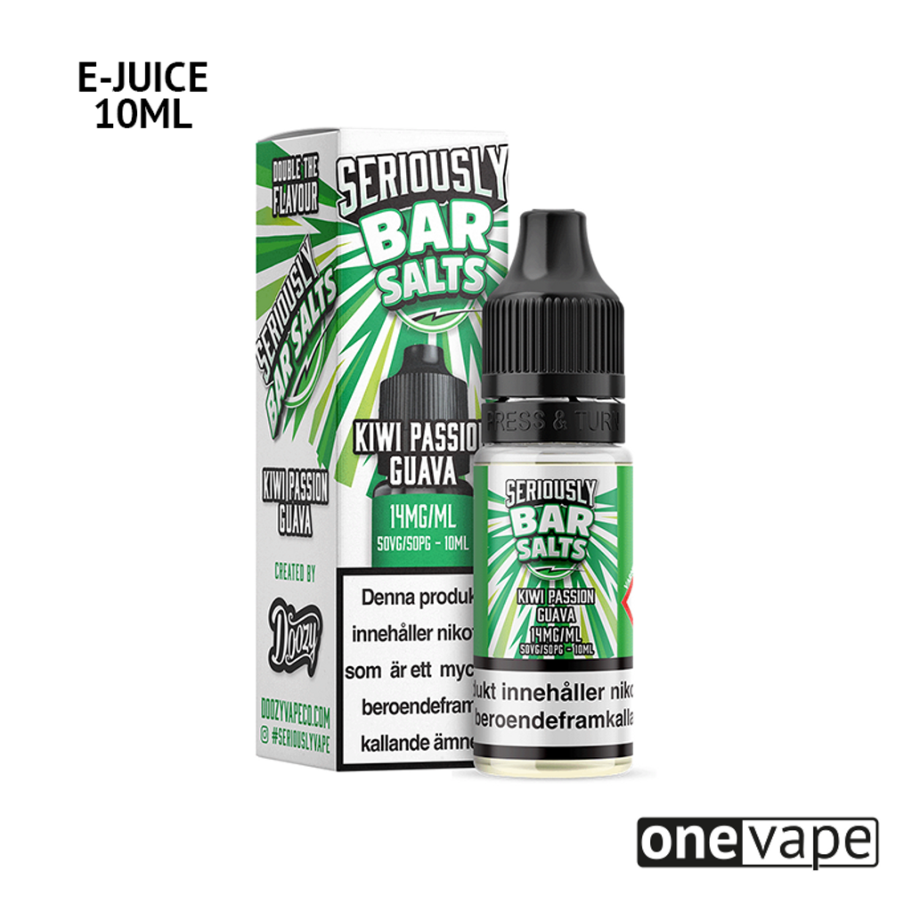 10ml E-juice med 14mg Nicsalt från Seriously med smak av kiwi, passionsfrukt och guava.