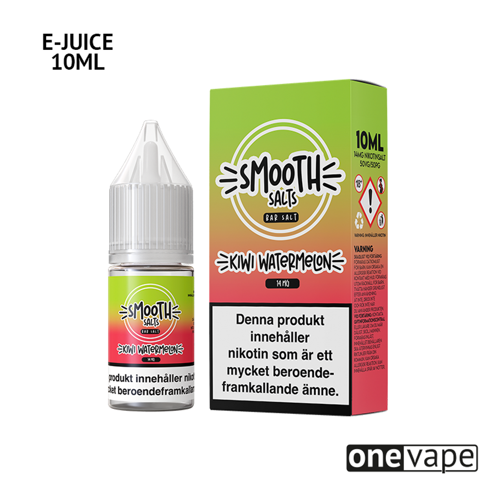 10ml E-juice med 14mg Nicsalt från Smooth Salts med smak av kiwi och vattenmelon.