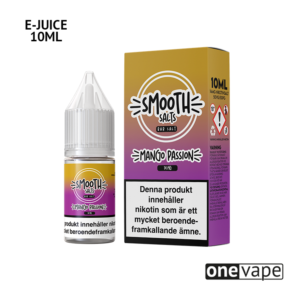 10ml E-juice med 14mg Nicsalt från Smooth Salts med smak av mango och passionsfrukt.