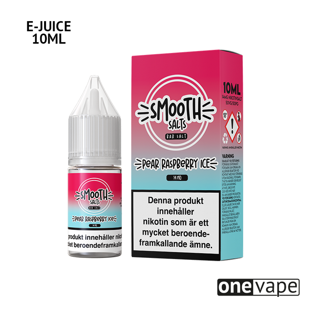 10ml E-juice med 14mg Nicsalt från Smooth Salts med smak av päron, hallon och cooling.