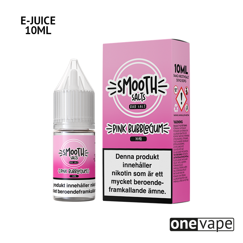 10ml E-juice med 14mg Nicsalt från Smooth Salts med smak av klassiskt rosa tuggummi.