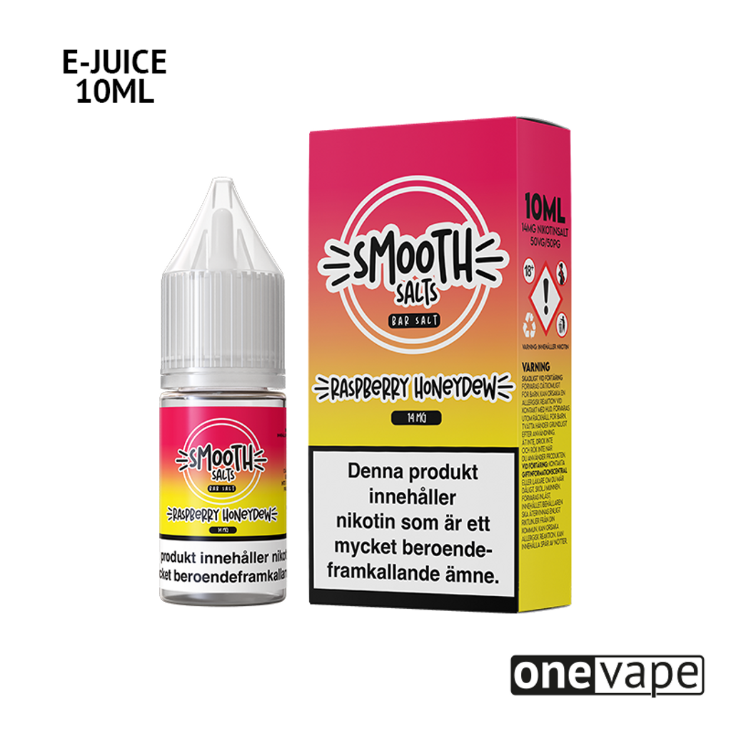 10ml E-juice med 14mg Nicsalt från Smooth Salts med smak av hallon och honungsmelon.