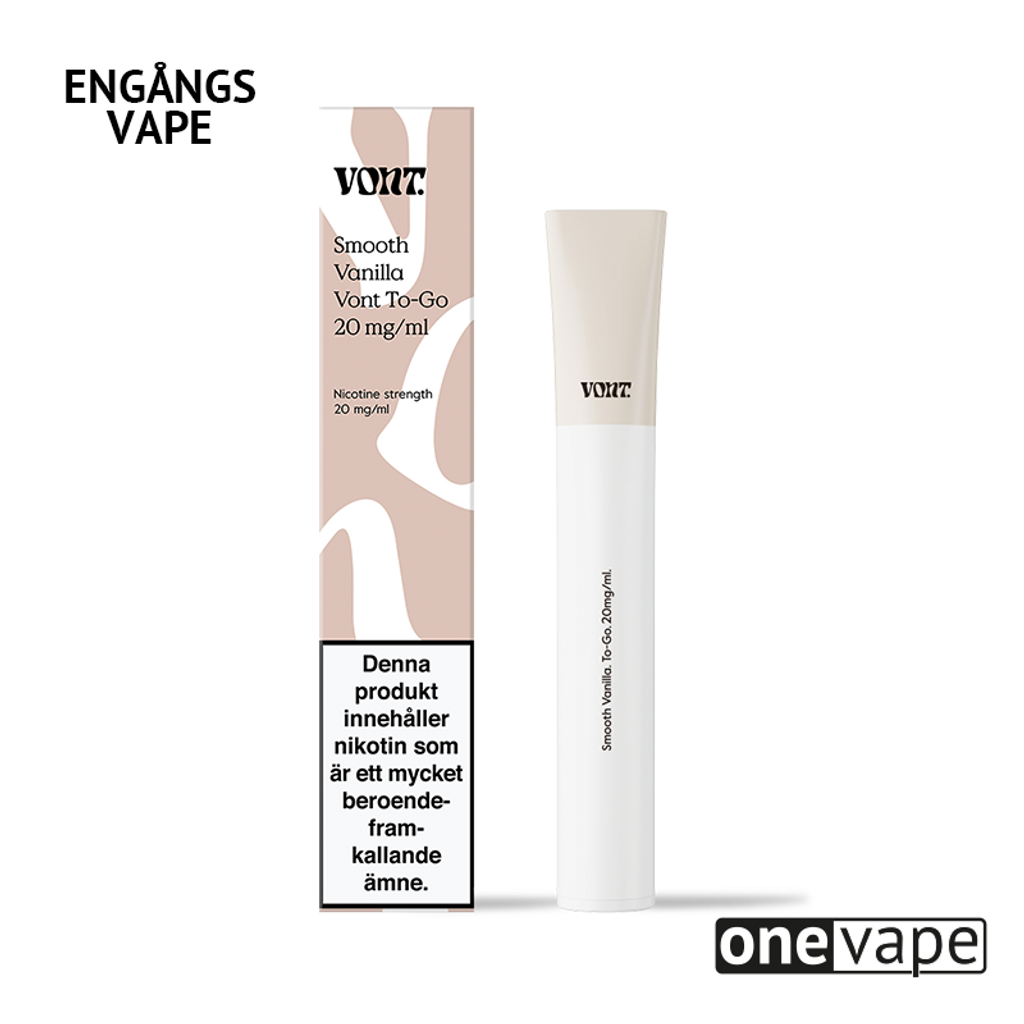 Vont är ett Svenskt företag som är baserat i Stockholm och grundades 2019. Vont vape utvecklar och tillverkar livsstilsprodukter inom nikotin utan tobak kategorin. Vont To-Go engångs e-cigaretter kommer i 20 olika smaker. Det är en smidig och enkel engångsvape som kan användas direkt ur förpackning, ingen förkunskap eller laddning behövs. Ta bara ur din Vont To Go engångs e-cigg ur förpackningen och kör igång. Vont to go vape kommer med 20mg nikotinstyrka och 2ml vätskekapacitet, så vont vapes kommer räcka dig hela dagen. Prova idag och hitta din nya favorit!
