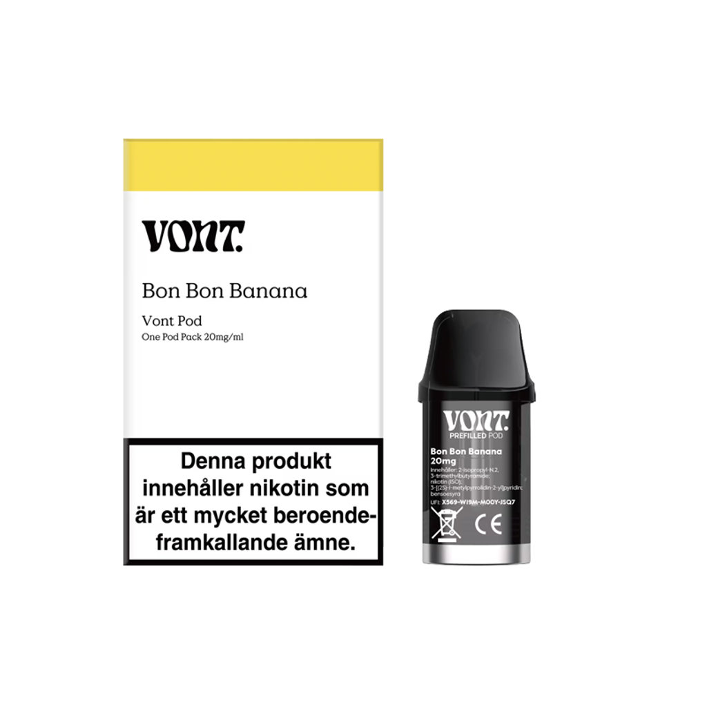 Förfylld Vont Pod med smak av banan. 20mg nikotin.