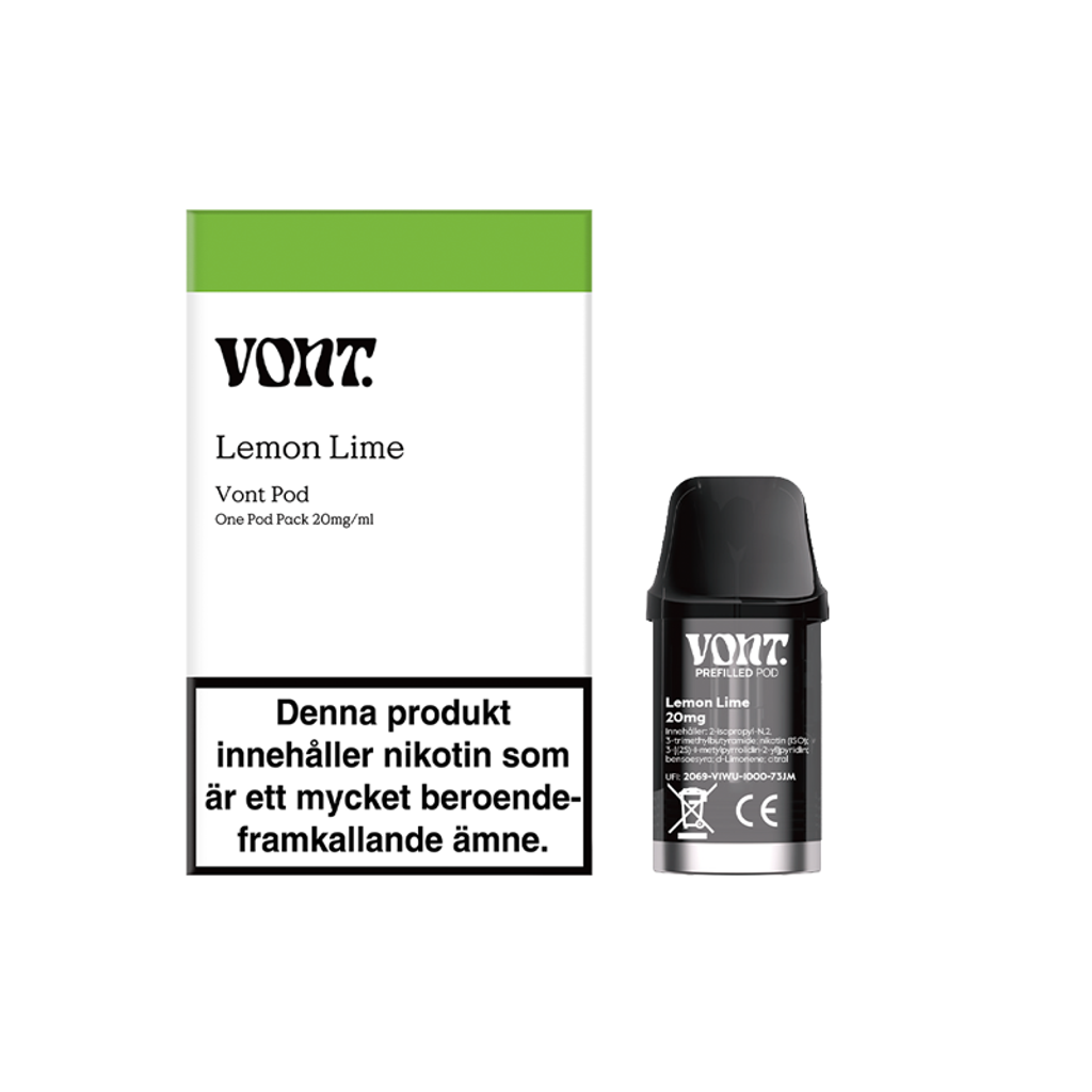 Förfylld Vont Pod med smak av citron och lime. 20mg nikotin.